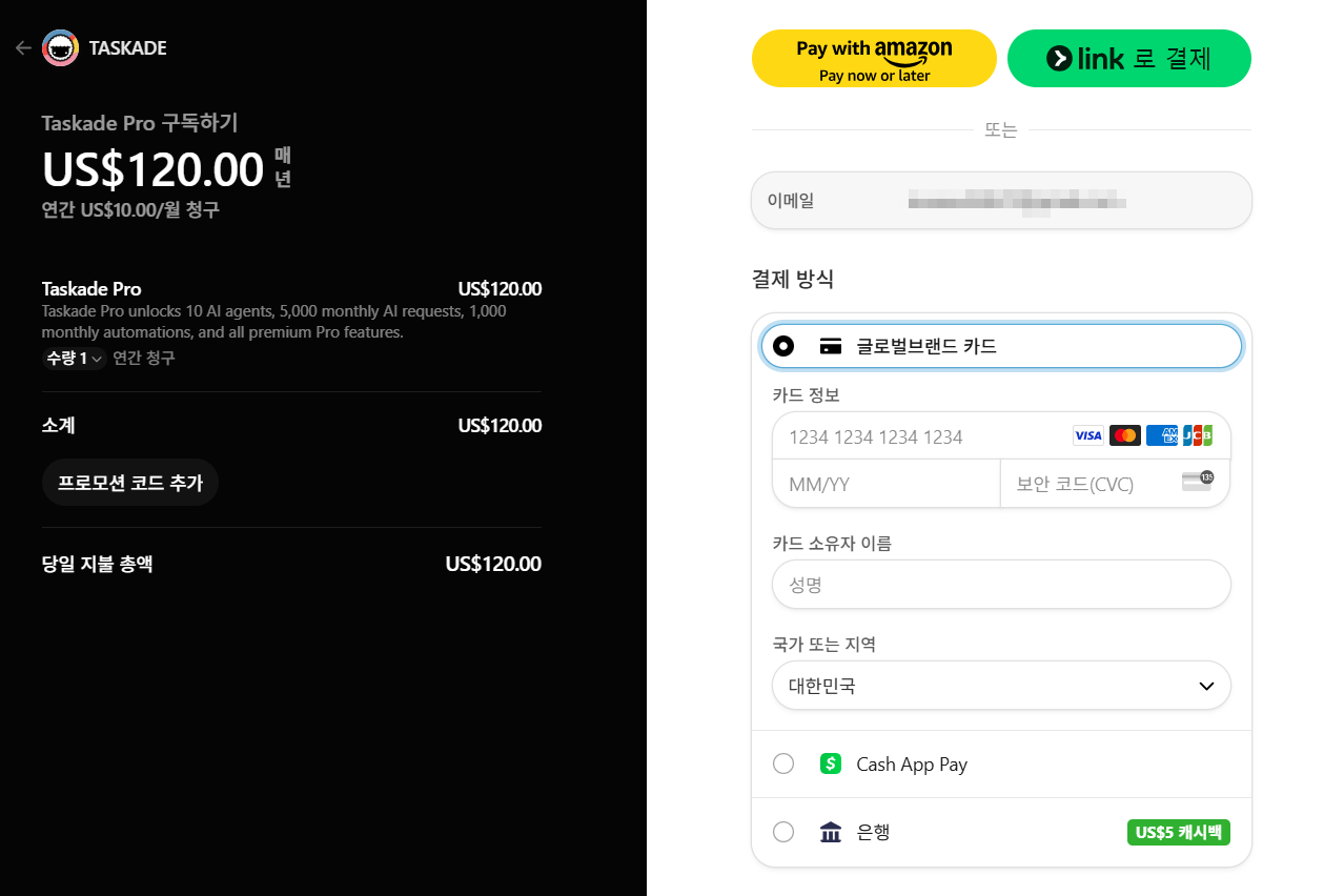 - Pro: 연간 결제 시 $10/월 (연간 약 $120)